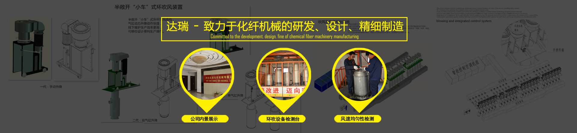 河北達瑞化纖機械有限公司,自2004年注冊成立以來,已為國內、外百余家大中型化纖企業和工程公司提供了產品或服務。公司致力于化纖機械的研發設計和精細制造。憑借多年行業經驗積累,公司擁有了一支設計及生產現場經驗豐富的技術團隊和高水平員工隊伍。特別是本公司生產的“絲束冷卻吹風裝置”及相關設備得到了國內外用戶的高度認可,具有很強的競爭優勢?!?/span>